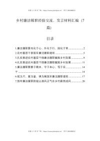乡村廉洁履职经验交流、发言材料汇编(7篇)