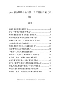 乡村廉洁履职经验交流、发言材料汇编(16篇)