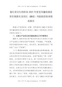 银行省分行国库处2025年度党风廉政建设责任制落实及岗位(廉政)风险防控检查情况报告