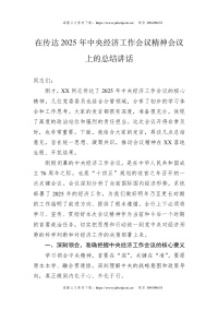 在传达2025年中央经济工作会议精神会议上的总结讲话