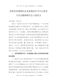 县委宣传部部长在县委理论学习中心组学习全会精神研讨会上的发言