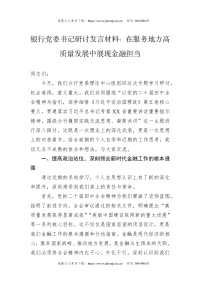 银行党委书记研讨发言材料:在服务地方高质量发展中展现金融担当
