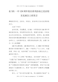 在XX一中120周年校庆系列活动之北京校友见面会上的发言