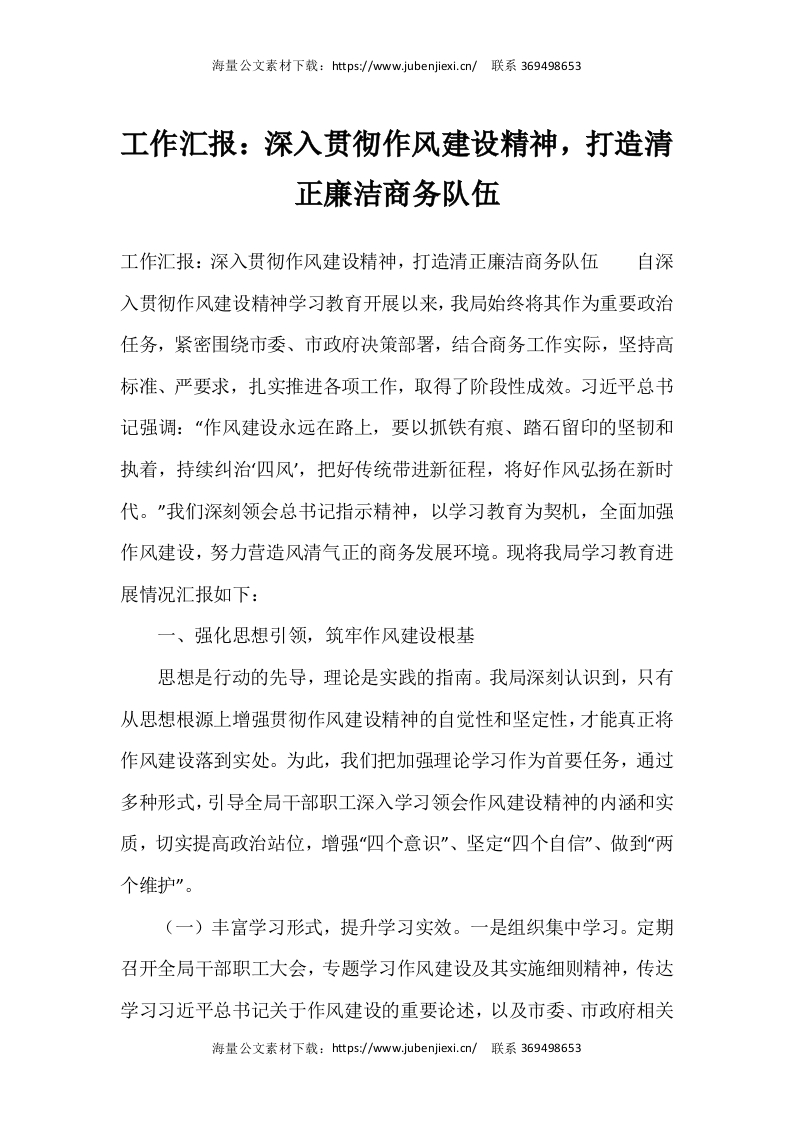 工作汇报:深入贯彻作风建设精神,打造清正廉洁商务队伍