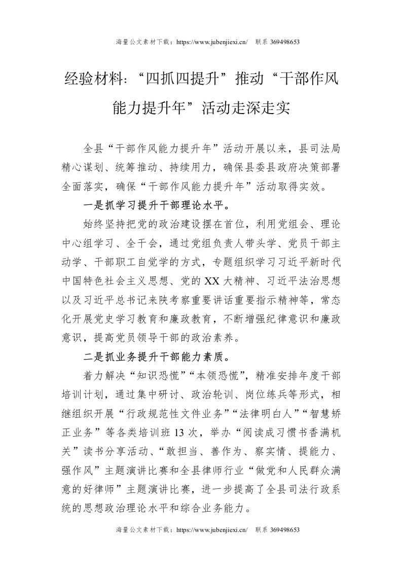 经验材料:“四抓四提升”推动“干部作风能力提升年”活动走深走实