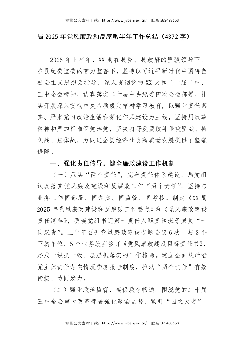 局2025年党风廉政和反腐败半年工作总结(4372字)