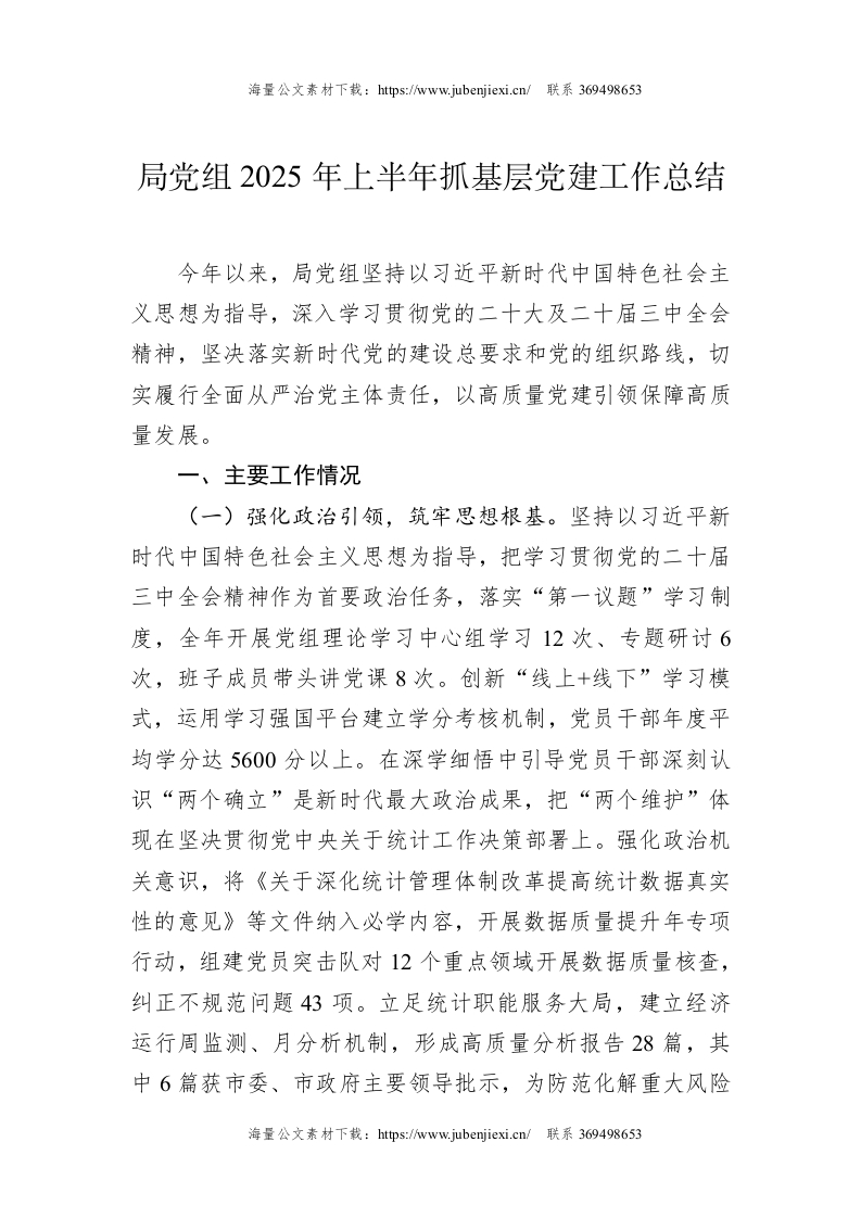 首页公文大全近期更新局党组2025年上半年抓基层党建工作总结