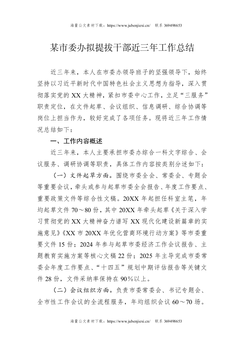 首页公文大全近期更新某市委办拟提拔干部近三年工作总结