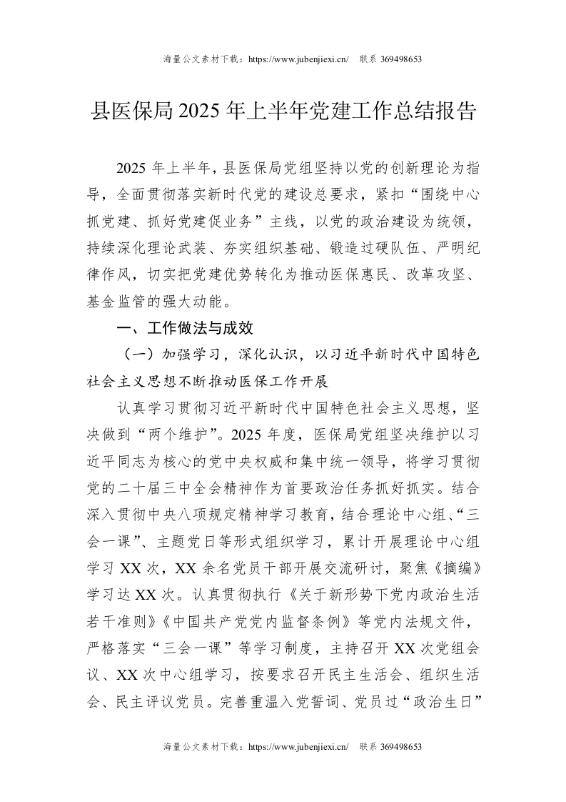 县医保局2025年上半年党建工作总结报告