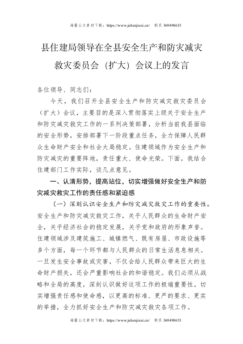 县住建局领导在全县安全生产和防灾减灾救灾委员会(扩大)会议上的发言