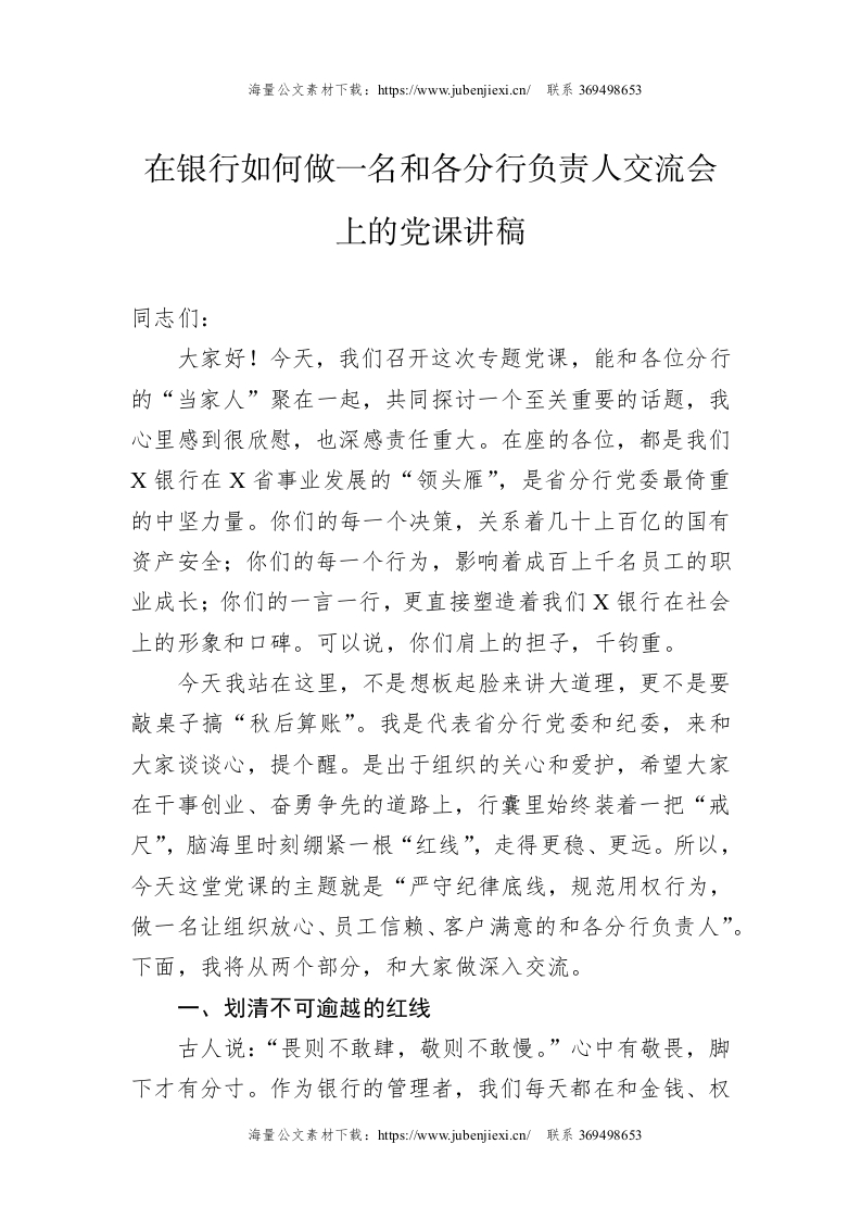 在银行如何做一名和各分行负责人交流会上的党课讲稿