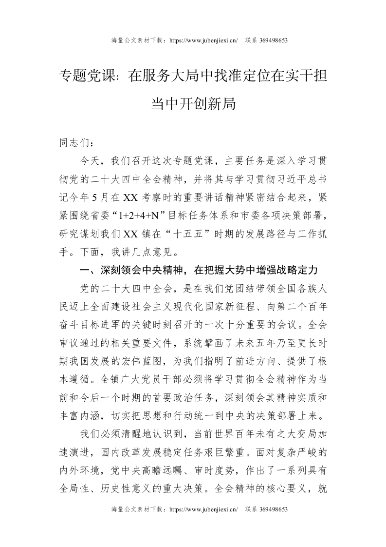 专题党课在服务大局中找准定位在实干担当中开创新局