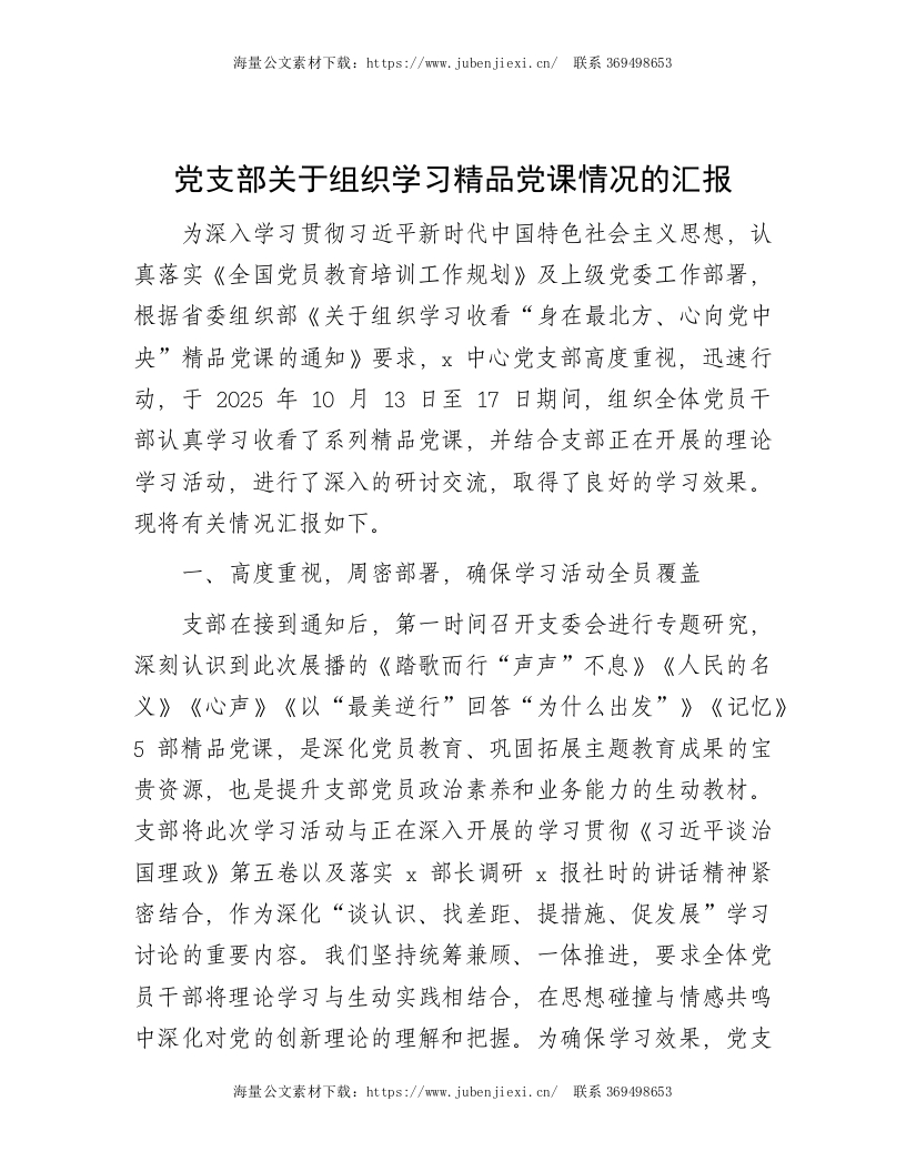 首页公文大全近期更新组织学习精品党课情况的总结汇报