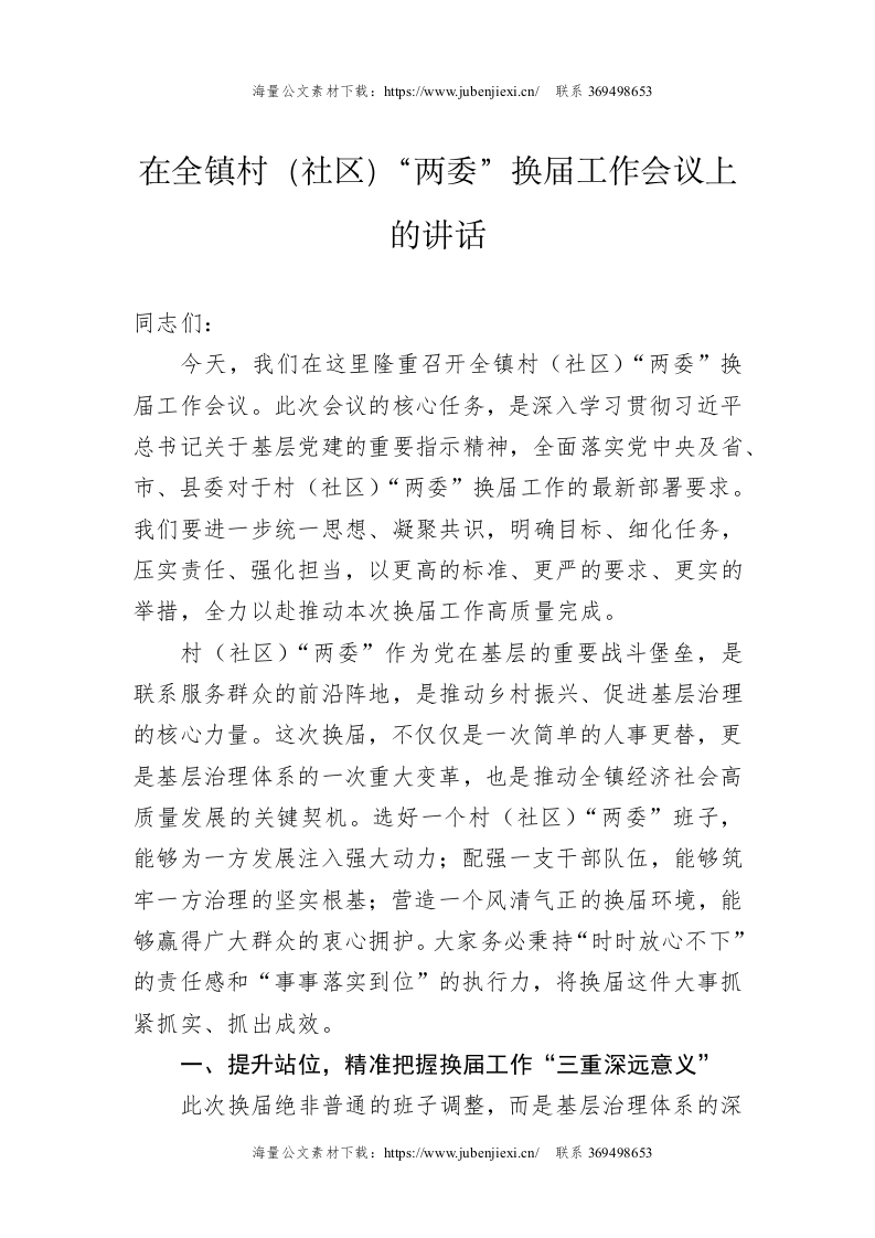 在全镇村(社区)“两委”换届工作会议上的讲话
