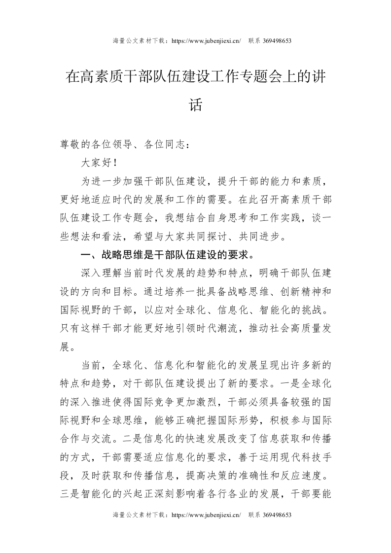 首页公文大全近期更新在高素质干部队伍建设工作专题会上的讲话