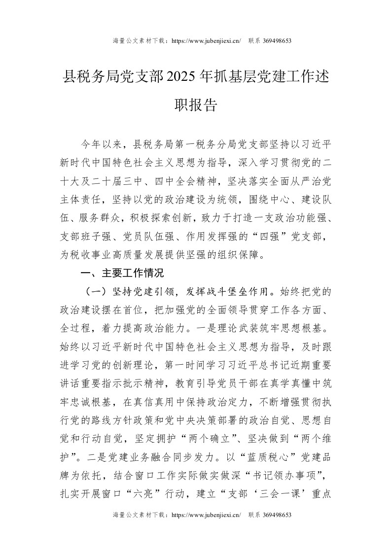 首页公文大全近期更新县税务局党支部2025年抓基层党建工作述职报告