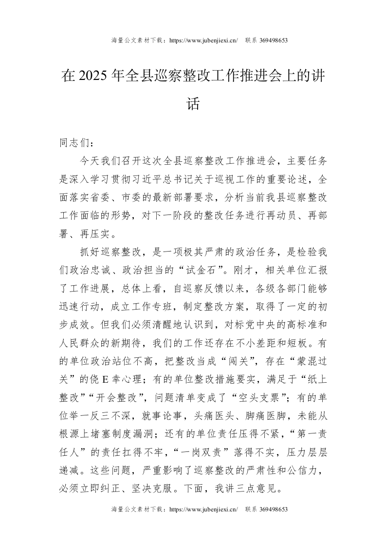 首页公文大全近期更新在2025年全县巡察整改工作推进会上的讲话