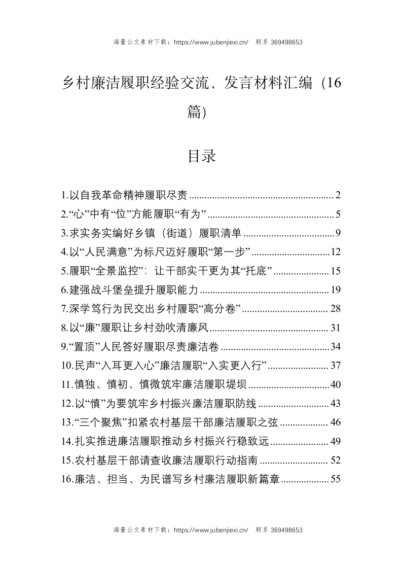乡村廉洁履职经验交流、发言材料汇编(16篇)