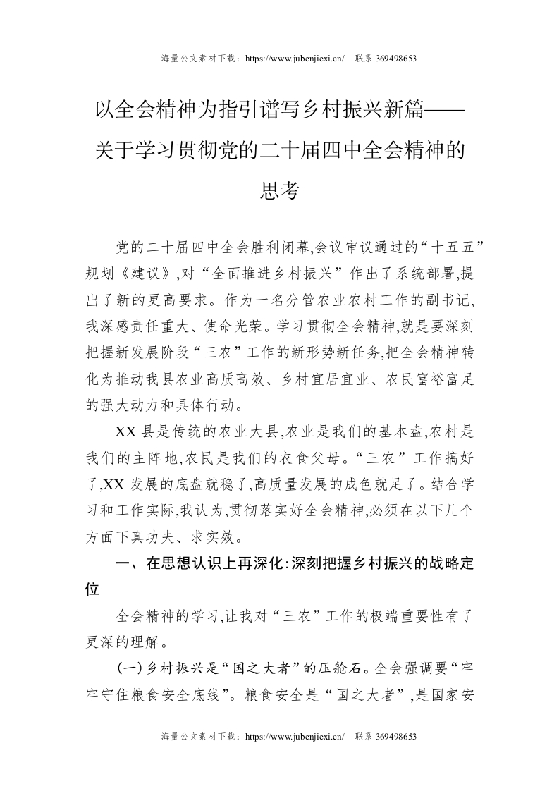 以全会精神为指引谱写乡村振兴新篇——关于学习贯彻党的二十届四中全会精神的思考