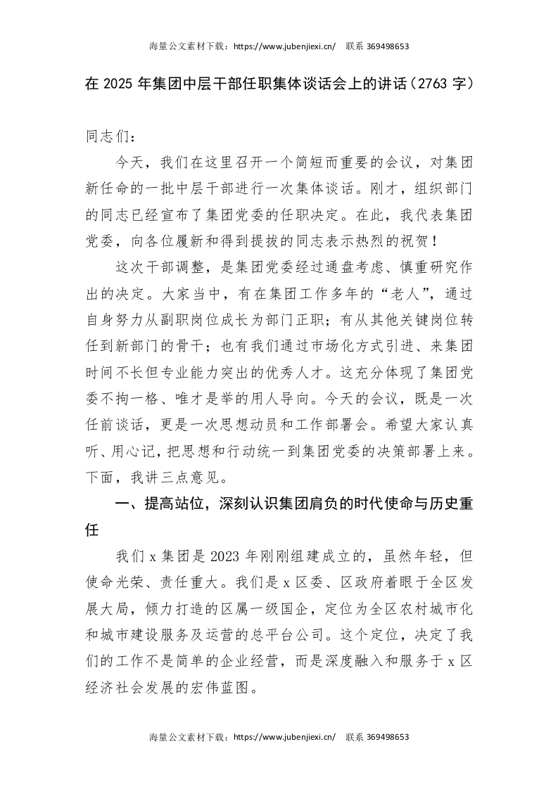 在2025年国企中层干部任职集体谈话会上的讲话(2763字)