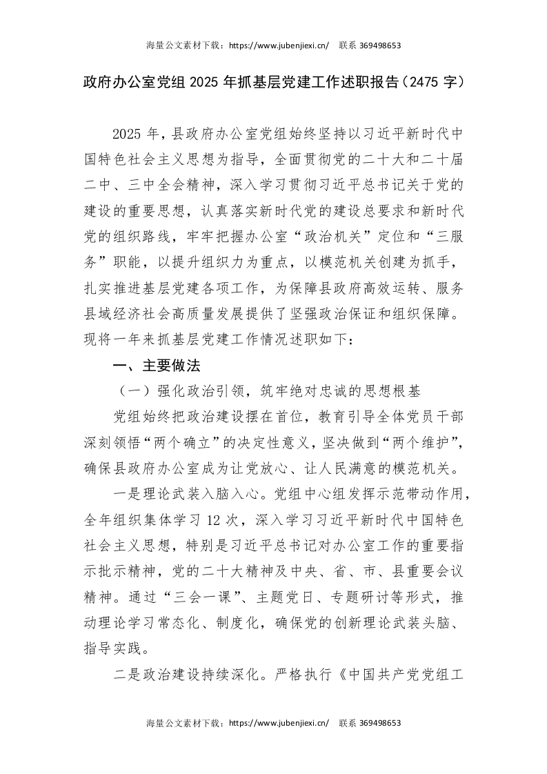 首页公文大全近期更新政府办公室党组2025年抓基层党建工作述职报告(2475字)