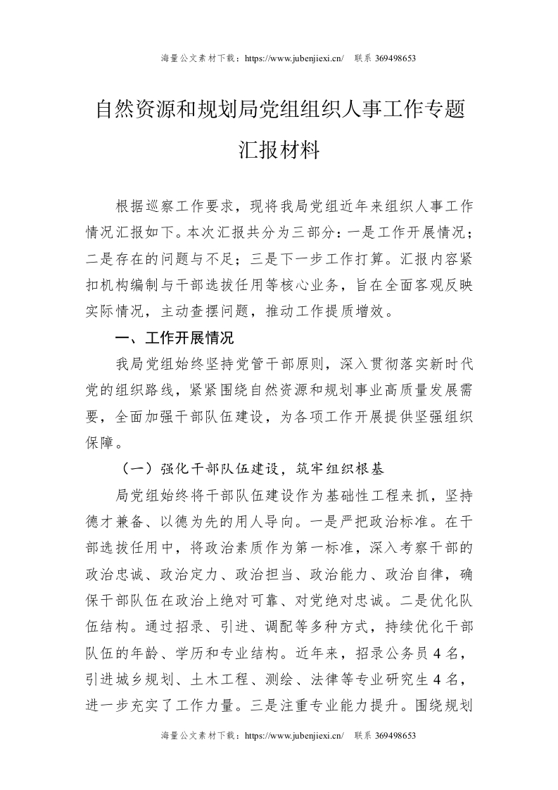 首页公文大全近期更新自然资源和规划局党组组织人事工作专题汇报材料