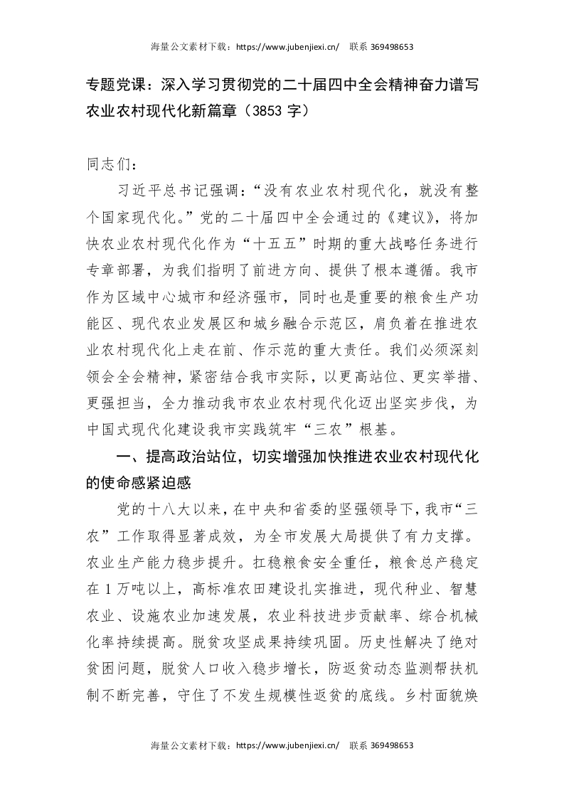 专题党课:深入学习贯彻党的二十届四中全会精神奋力谱写农业农村现代化新篇章(3853字)