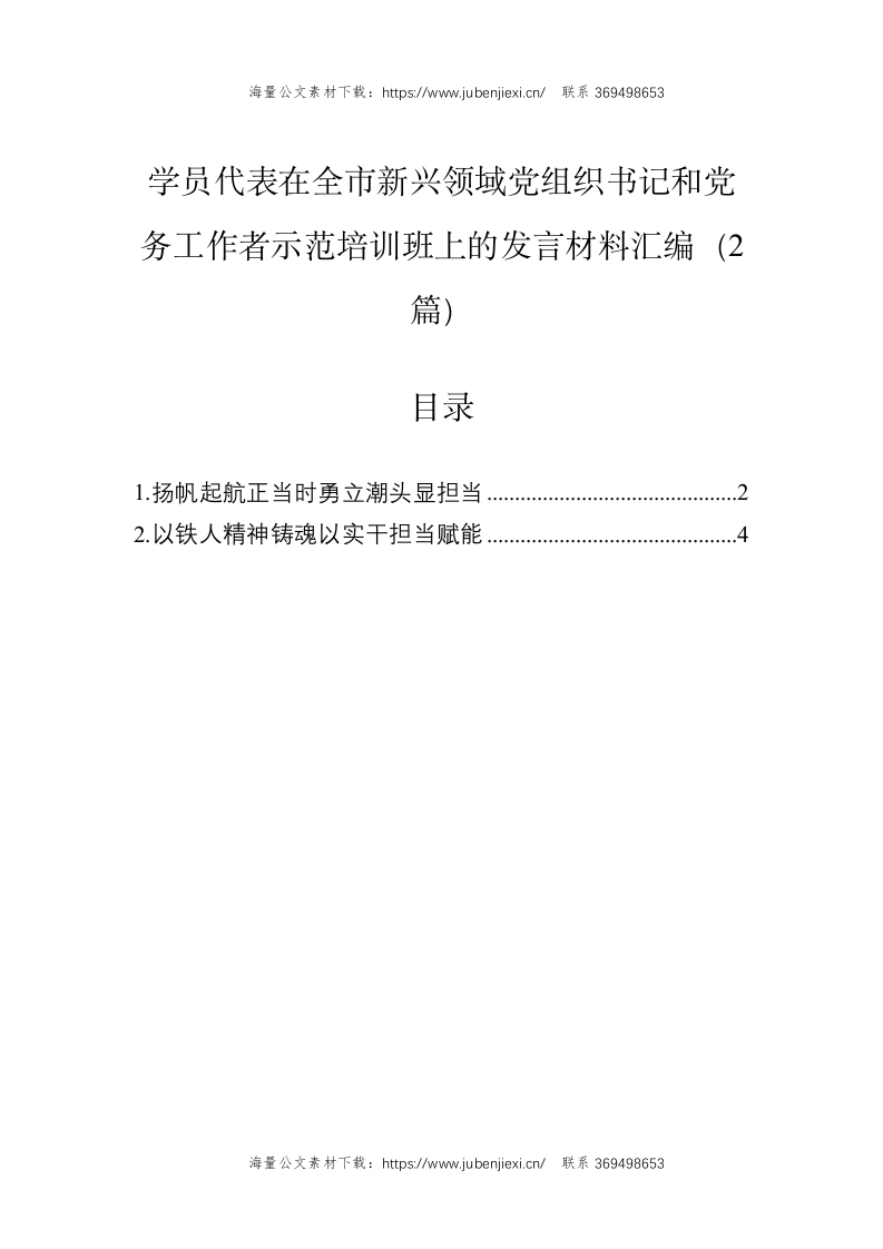 学员代表在全市新兴领域党组织书记和党务工作者示范培训班上的发言材料汇编(2篇)