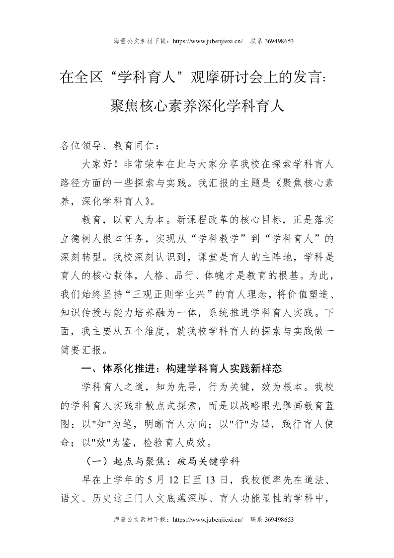 首页公文大全近期更新在全区“学科育人”观摩研讨会上的发言:聚焦核心素养深化学科育人