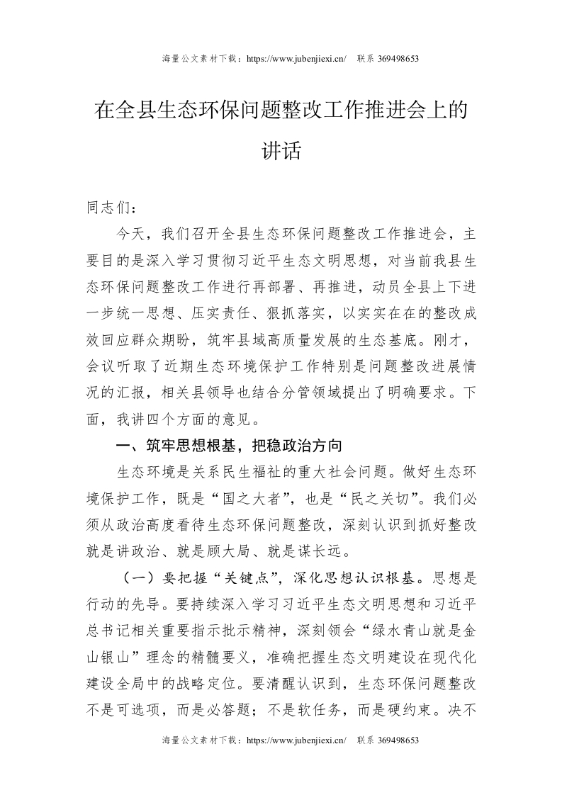 首页公文大全近期更新在全县生态环保问题整改工作推进会上的讲话