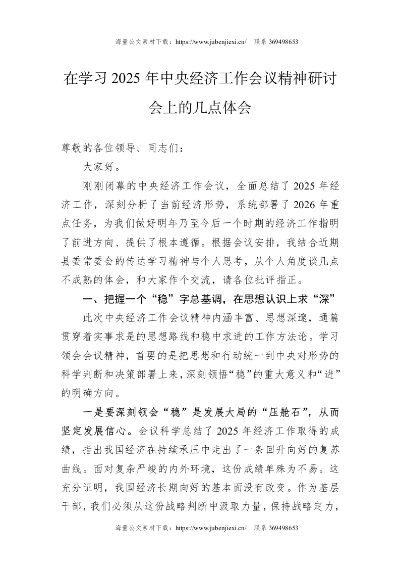 在学习2025年中央经济工作会议精神研讨会上的几点体会