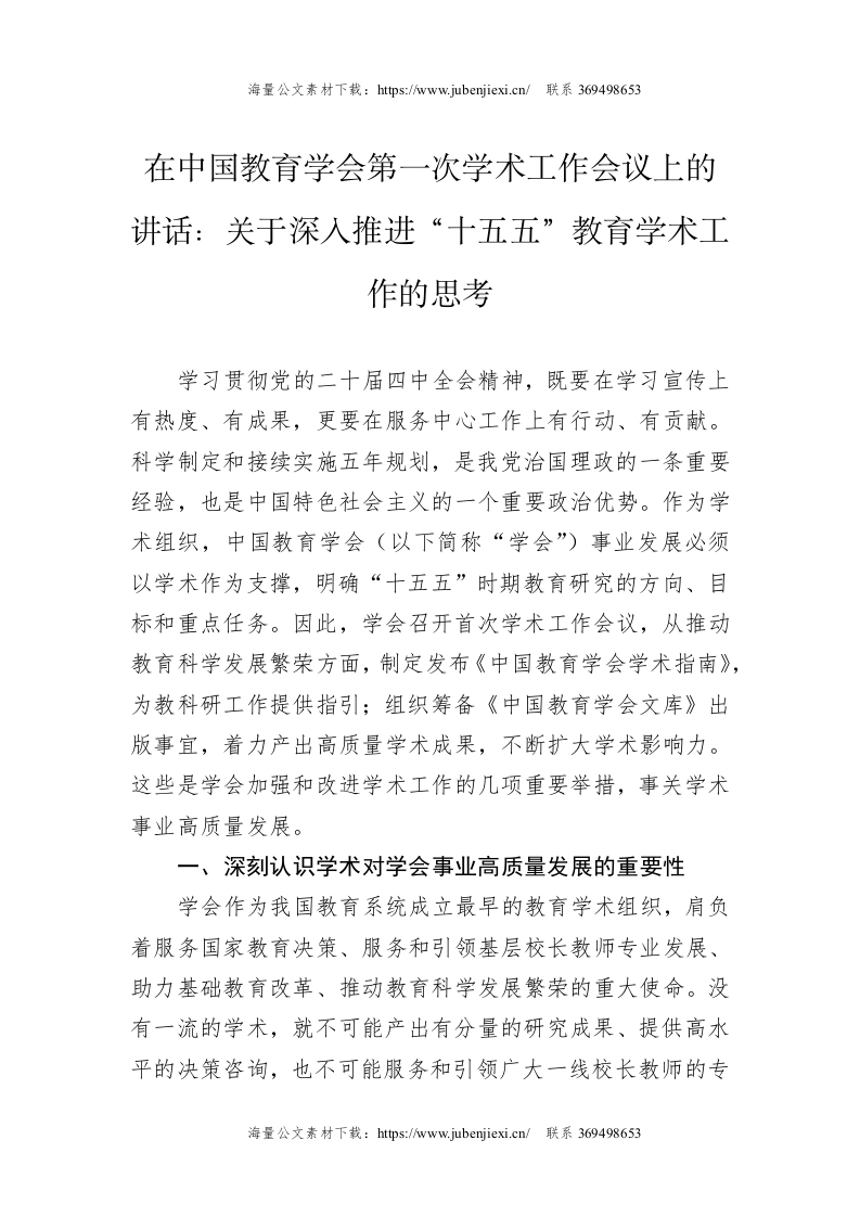 在中国教育学会第一次学术工作会议上的讲话:关于深入推进“十五五”教育学术工作的思考