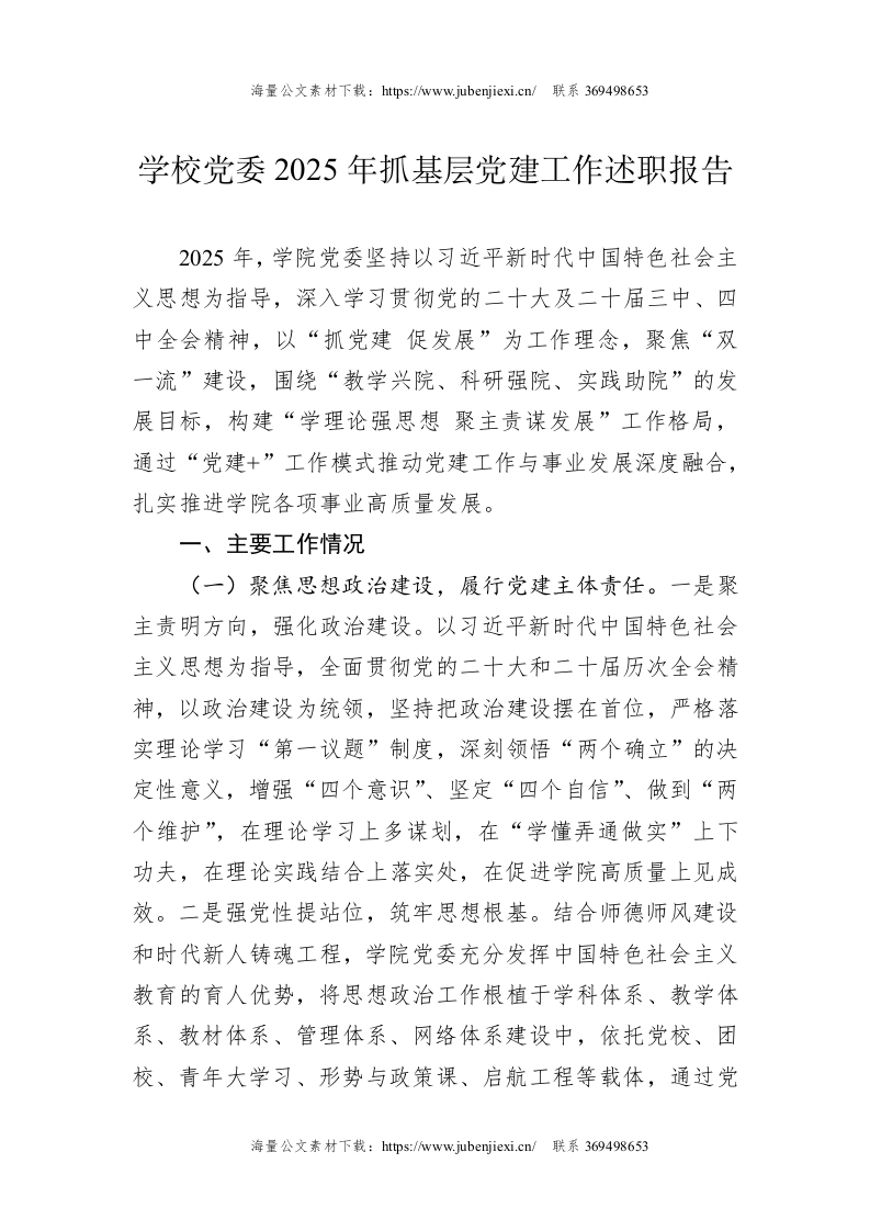 首页公文大全近期更新学校党委2025年抓基层党建工作述职报告