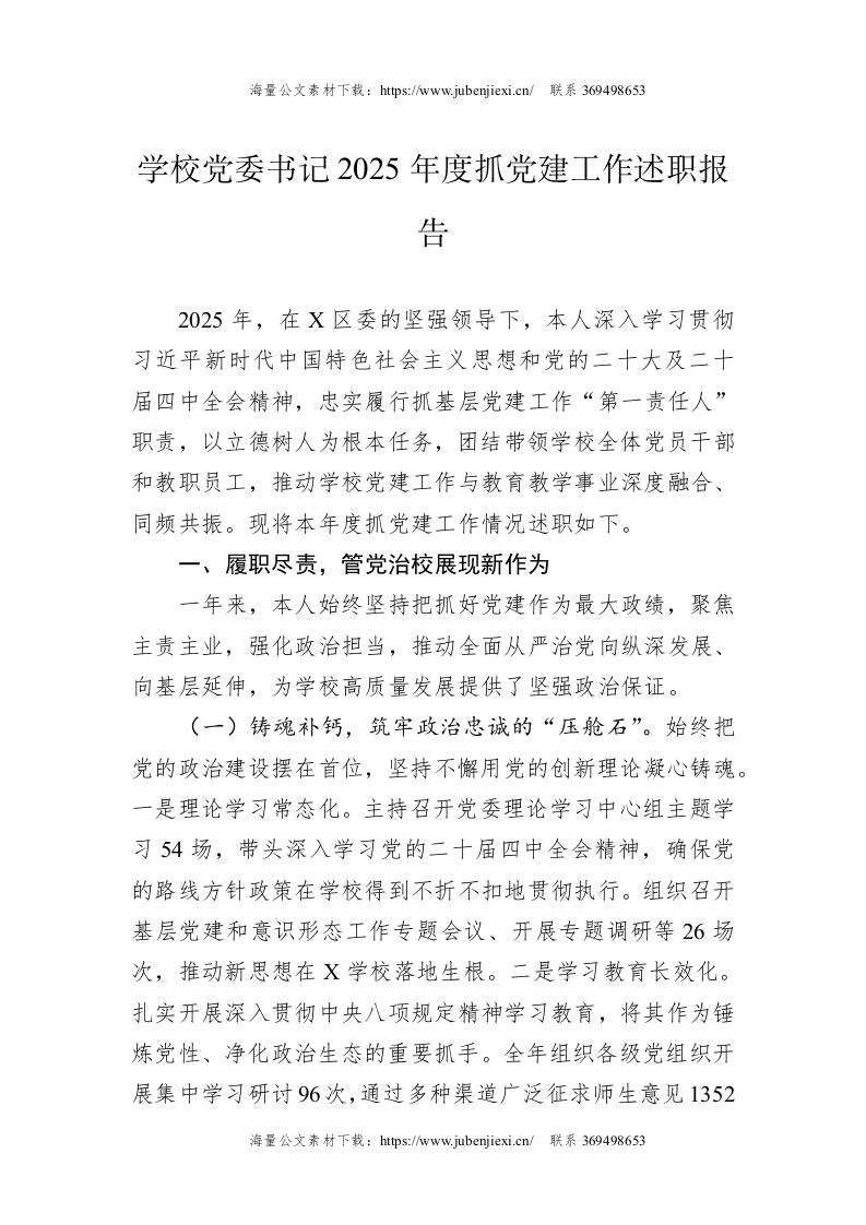 首页公文大全近期更新学校党委书记2025年度抓党建工作述职报告
