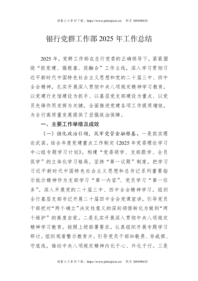 首页公文大全近期更新银行党群工作部2025年工作总结