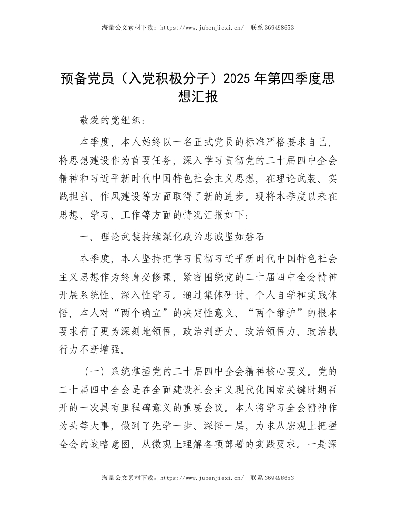 预备党员(入党积极分子)2025年第四季度思想汇报