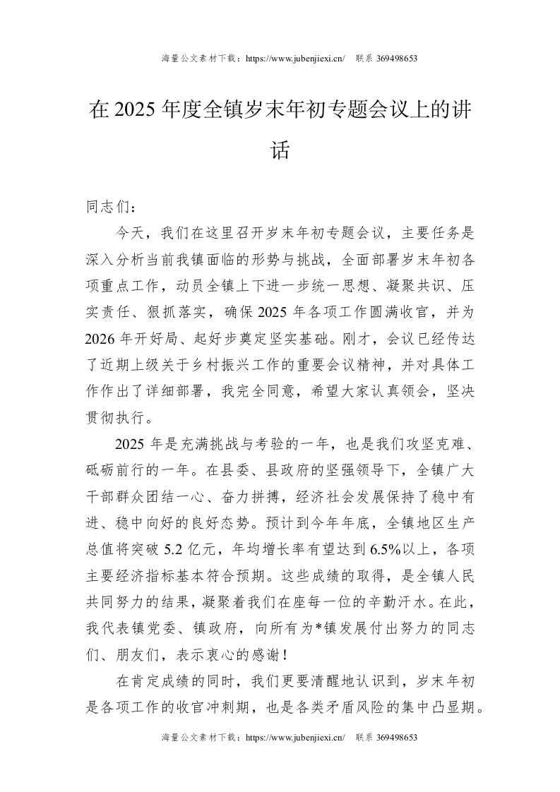 在2025年度全镇岁末年初专题会议上的讲话