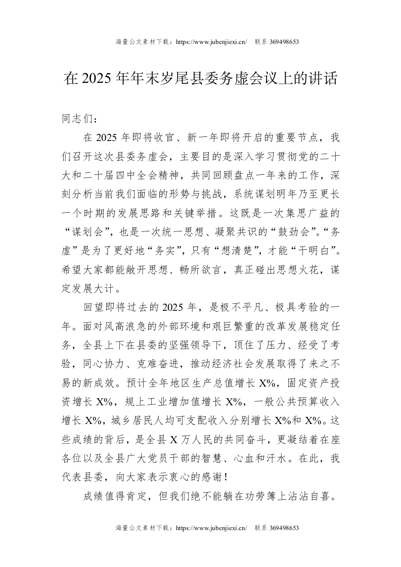 在2025年年末岁尾县委务虚会议上的讲话