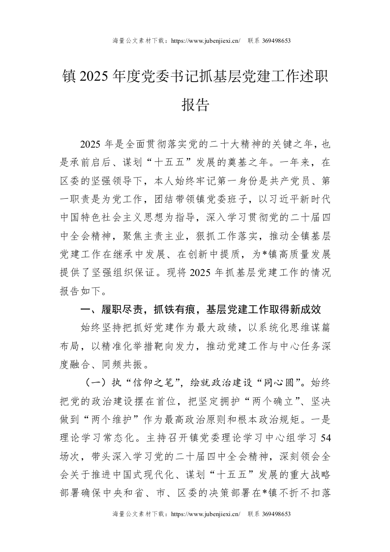 镇2025年度党委书记抓基层党建工作述职报告