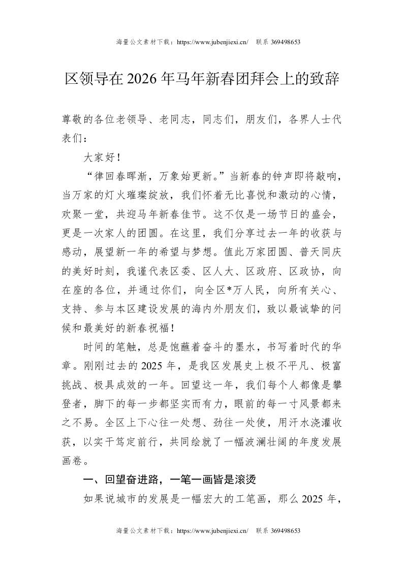 首页公文大全近期更新区领导在2026年马年新春团拜会上的致辞