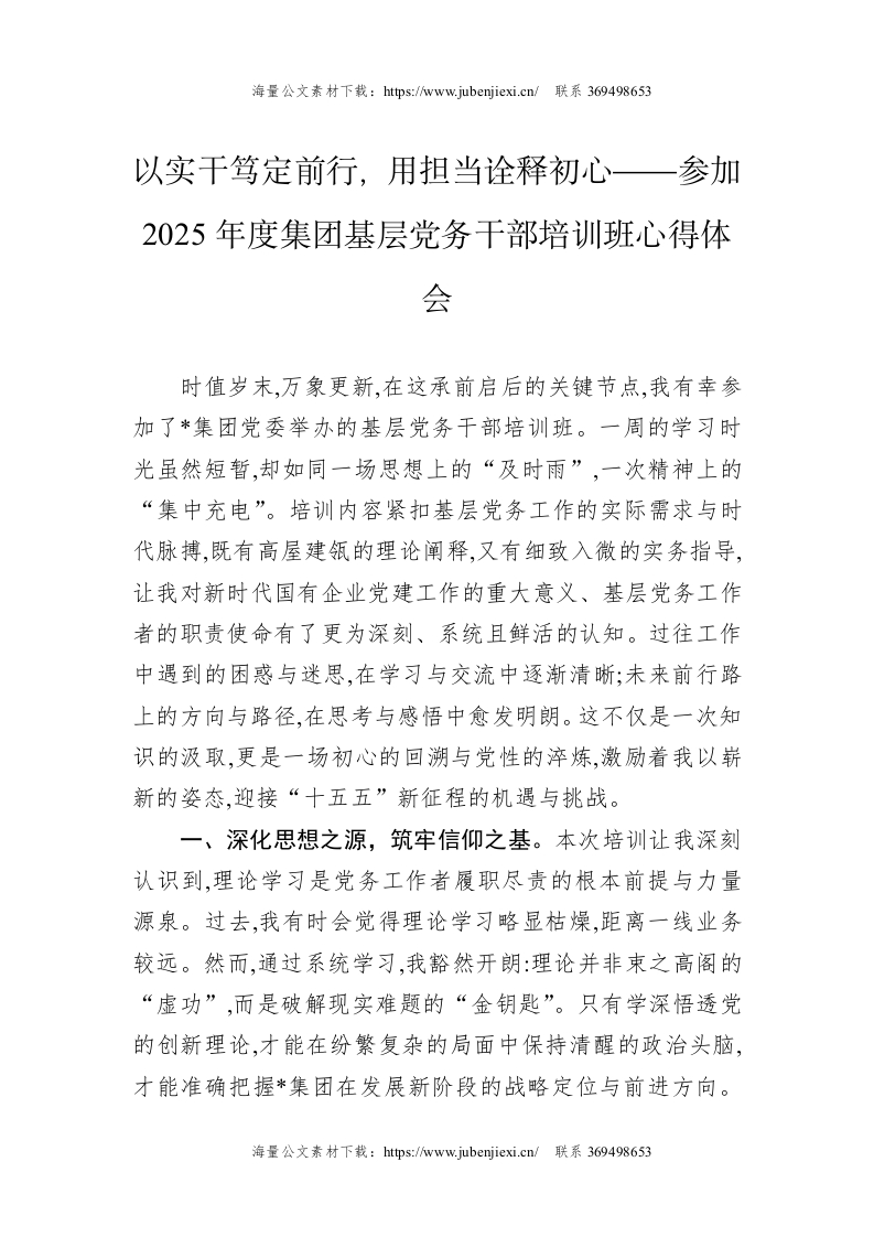 以实干笃定前行,用担当诠释初心——参加2025年度集团基层党务干部培训班心得体会