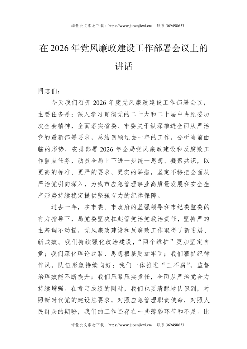 首页公文大全近期更新在2026年党风廉政建设工作部署会议上的讲话