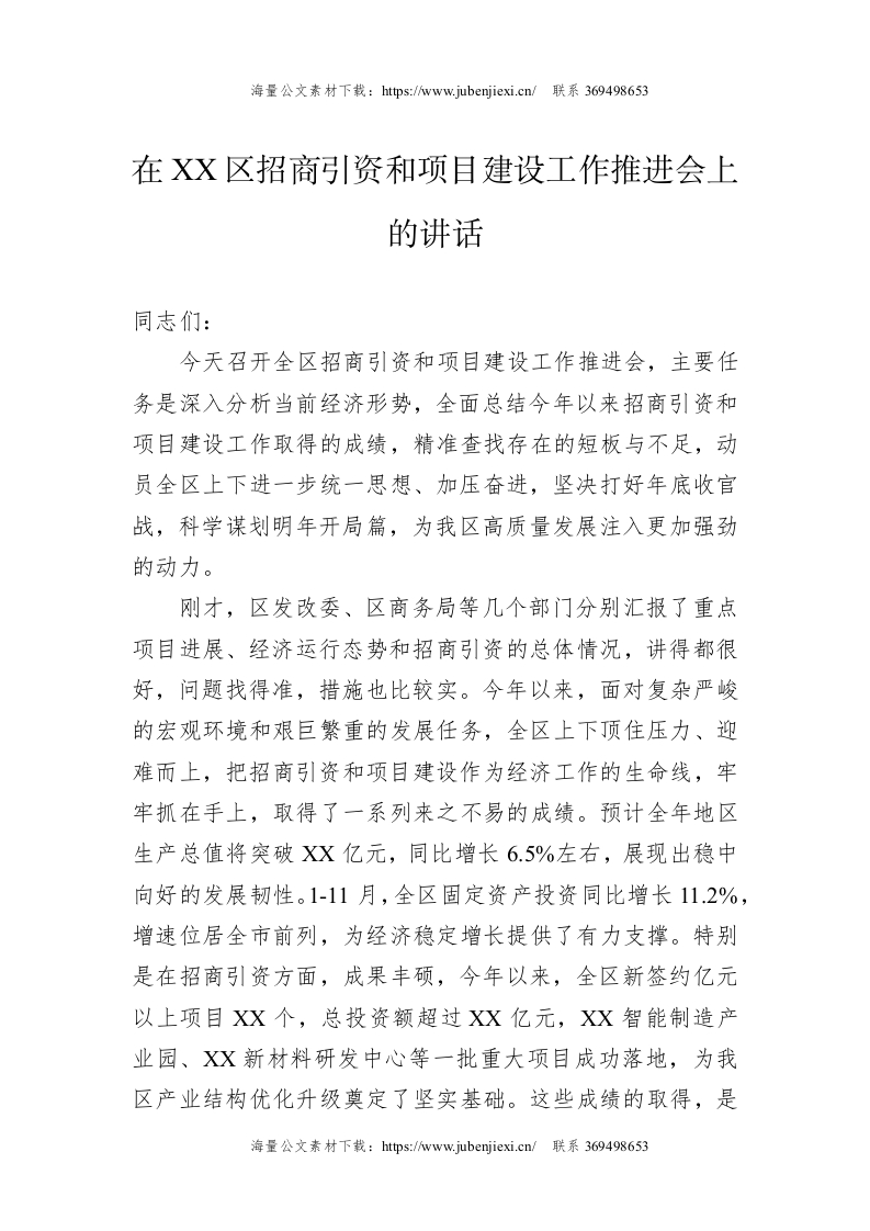 首页公文大全近期更新在XX区招商引资和项目建设工作推进会上的讲话