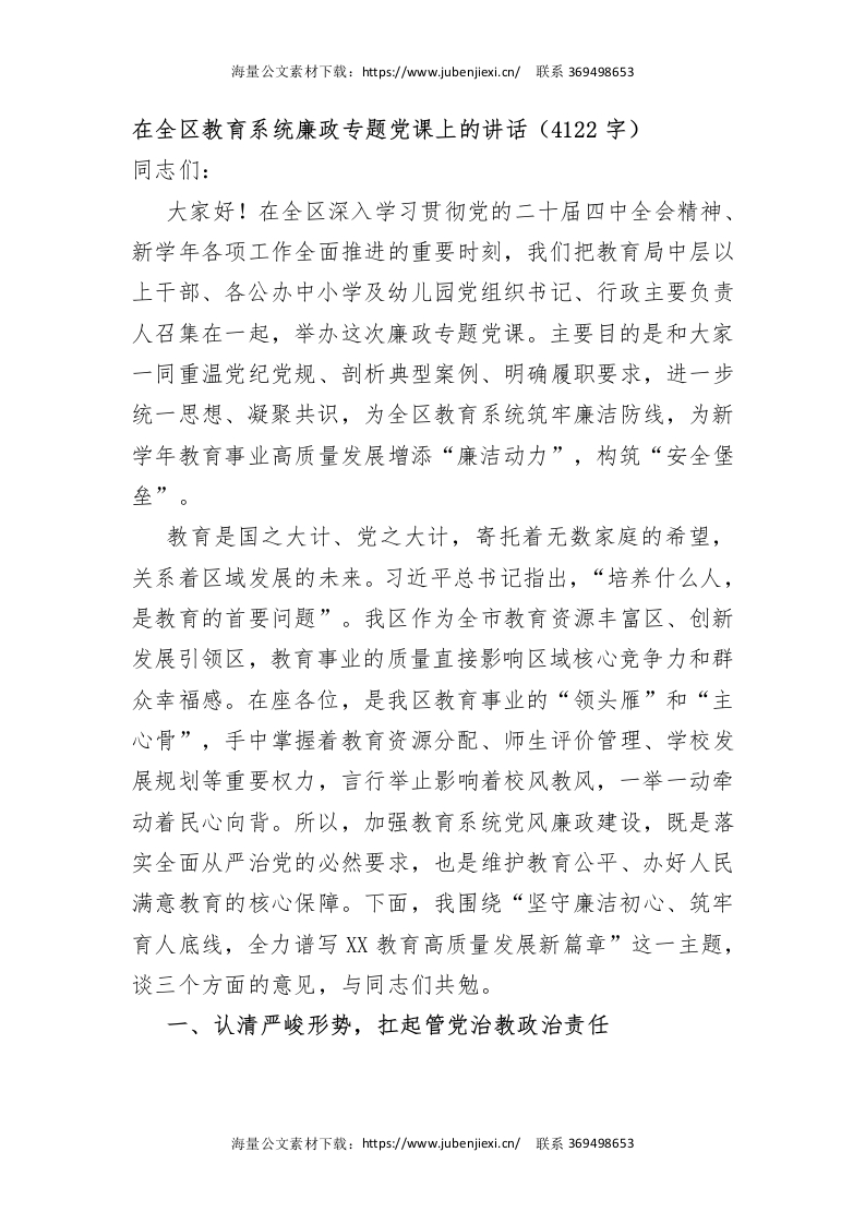 在全区教育系统廉政专题党课上的讲话(4122字)